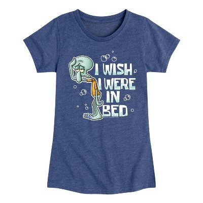 Girls' SpongeBob SquarePants Squidward I Dont Get Paid Enough Fitted Short Sleeve Graphic T-Shirt - Heather Navy - 2T