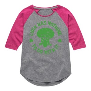Girls' - SpongeBob Squarepants - Squidward Luck Shirt Tail Raglan Graphic T-shirt