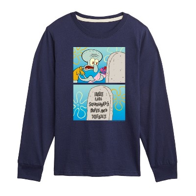 Boys' SpongeBob SquarePants Squidward Nope Not Today Long Sleeve Graphic T-Shirt - Navy - 3T