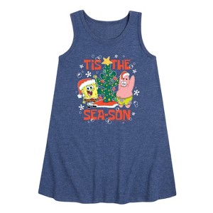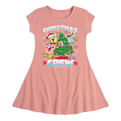 SpongeBob SquarePants - Tis The Season - Toddler and Youth Girls A-line Dress - Dive into the fun of Bikini Bottom with SpongeBob SquarePants graphic apparel! Featuring colorful designs of SpongeBob, Patrick, Squidward, Sandy, and more, this collection brings the show's quirky humor and unforgettable moments to life. Perfect for fans of all ages, these pieces add a splash of personality to any wardrobe.