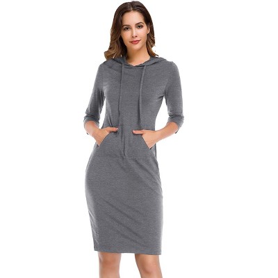 - FEATURES - Hoodies for Women with a Kangaroo Pocket,Solid Color Sweatshirt Dress,Above Knee Length Pullover Hoodie Dress with Drawstring.