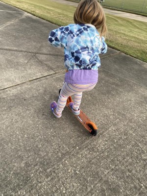 Very practical scooter, perfect to entertain my five year old while her sister is in soccer practice.. I like that is light weight easy to carry on, also is very simple to adjust the height of the child… and the ligthing wheels made this an awesome scooter.