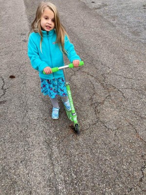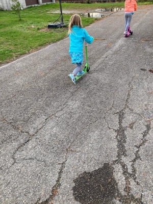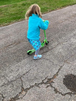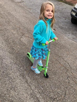 My daughter is absolutely thrilled with her Sport Runner Kids' 2 Wheel Kick Scooter with LED Lights. Her scooter is a beautiful, bright lime green color. The handlebars are easy to grip and are comfortable to hold. There are three height settings for the handlebars, so her scooter will grow with her for a bit. The wheels are sturdy and glide nicely on the cement. As she makes her scooter go, the tires and the frame light up, thanks to the built in LED lights. My daughter says it lighting up is her favorite feature. The handlebars steer easily and the brake works great when she's ready to stop. All in all, this is a great scooter that she'll be enjoying for years to come.