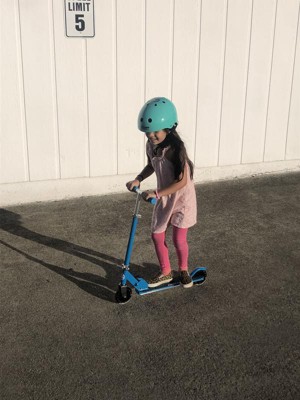 My daughter loves her new scooter! It was easy to get setup. I like that it can fold down relatively small, great if we wanted to take it to a park or on vacation. It’s easy to adjust the handlebar and is great for shorter and taller kids. The brake in the back works great. We really like the lights when it starts to get dark out, they’re fun and make it easier to see the scooter.