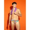 • Crafted from durable 4-way stretch fabric, this men's brief swimsuit moves seamlessly with your body during intense competition or training