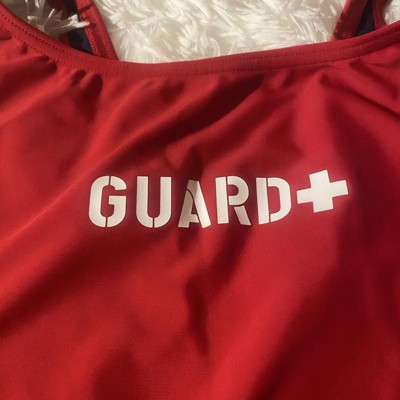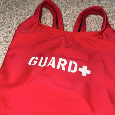 [This review was collected as part of a promotion.] This is an amazing swimsuit! Ordered it in a size 44 and the fit on it is absolutely perfect! It's fully lined with a navy blue liner and it provides full coverage on top and on the bottom which is a must. The color is a rich, vibrant, fire engine red. It really pops for water safety. Love the stylish guard decal on it, it's a fun touch. The material is durable and very high quality. This is a very high end swimsuit and we really love it! I received an incentive to write this review.
