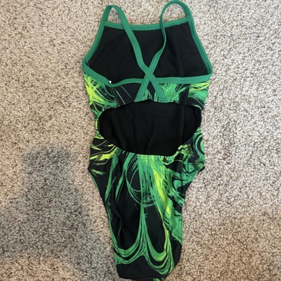 [This review was collected as part of a promotion.] I bought this size 34 swimsuit for my daughter who is on a swim team. She usually wears youth XL. I thought this would be a great suit for practice so she doesn’t wear out her team suit. The cut of this suit is far more narrow than the swim team suits she has had in the past. The leg holes are cut very high and slim so they go very high on her thigh and there is not as much coverage on the bottom. She is self conscious about it, and understandably so. Additionally, she has only worn it twice and there is already significant fraying on the bottom area. She is not sitting on the edge of the cement pool or anything that would cause it to fray so quickly. I received an incentive to write this review.