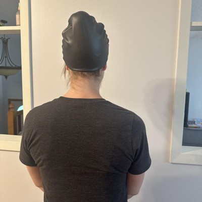 [This review was collected as part of a promotion.] This is the sporti silicone swim cap in black, and it comes in a number of other colors to best suit your taste or style. I was very impressed by the quality for the price. I am not well rehearsed in putting on a swim cap but I was definitely met with some challenges when trying to get all of my hair underneath. I think this might have just been a tiny bit too small, although there is some gapping in the back upper area. I received an incentive to write this review.