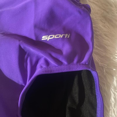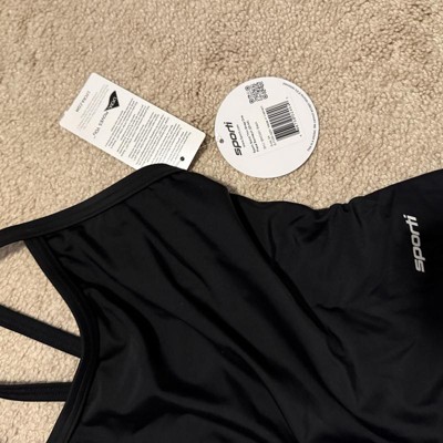 • Featuring a sporty style with a large keyhole opening and a subtle heat transfer Sporti logo on the left hip, adding a touch of athletic elegance.
