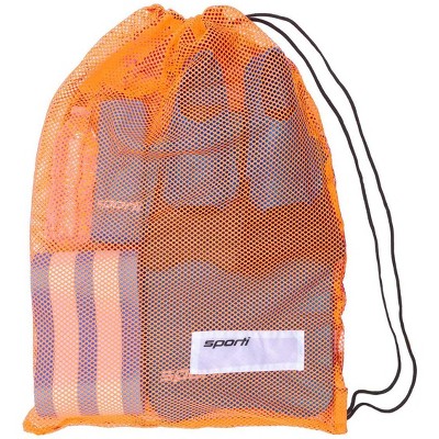 The Sporti Premium Mesh Backpack is perfect for fins, pull buoys, swimsuits and towels, this bag has backpack-style straps with a handle above for comfortable transportation.