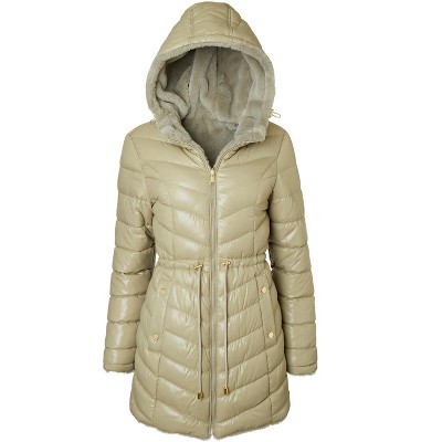Sportoli Women Quilted Long Winter Coat Fur Trim Plush Lined Hood Puffer Jackets - 1 of 4