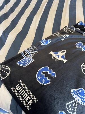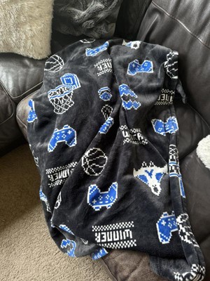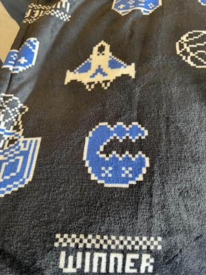 Adorable boy blanket. My kiddo needed an upgrade from a mario blanket and this is perfect. It is super cozy and also more adult than a kiddo blanket yet has some child to it as well. The gaming is a nice alternative to "sports"