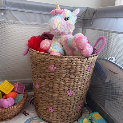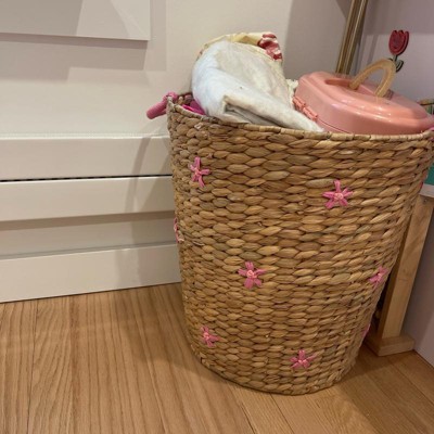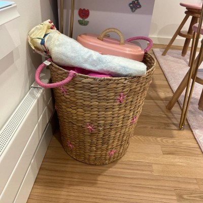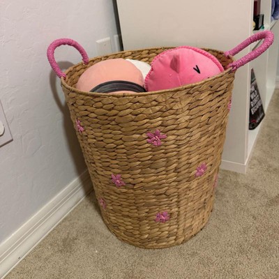 [This review was collected as part of a promotion.] This is such an adorable woven basket for a girls room. I put it in my daughter’s room and put blankets and stuffed animals in it, and it worked perfectly. The basket has beautiful pink flowers all around it. The quality of the basket is very good for the price point. My daughter absolutely loved the basket in her bedroom and got many compliments on it.