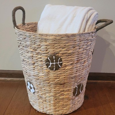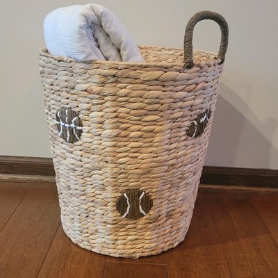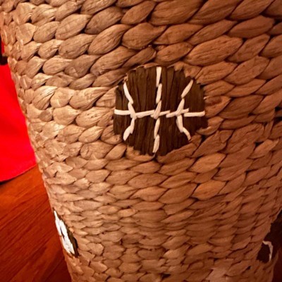 [This review was collected as part of a promotion.] This sports natural woven floor basket is exactly what I was looking for. The craftsmanship is excellent – the weaving feels strong and durable while still looking natural and stylish. It adds a earthy touch to the room and blends beautifully with both modern and rustic decor. The size is perfect for storing sports gear, blankets, or toys, and it holds it shape, even when full. My son loves the sports images.