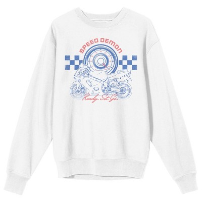 Sportsbike Race Speed Demon Adult White Long Sleeve Hoodie-Medium