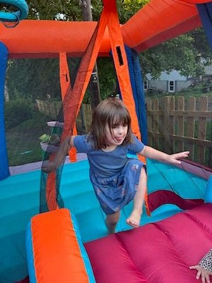 [This review was collected as part of a promotion.] Needs a level, clear outdoor space free of sharp objects.  • Constant power needed (to keep blower running). If power cuts or blower stops, the inflatable will deflate. • Depending on weather, moisture, cold etc., material and use may degrade over time; maintenance (cleaning, drying, storing properly) will help prolong life. • With younger kids, supervision is especially important to avoid collisions, overcrowding, or misuse of the slide/hoop. Yard games like hopscotch, four square, Frisbee, lawn bowling, giant Jenga.  • Nature scavenger hunt (find a leaf, a flower, a bug, etc.).  • Water play: sprinkler, water balloons/tables, splash pad if possible.  • Creative crafts: chalk drawing on driveway, outdoor painting, nature art (leaves, sticks) etc.