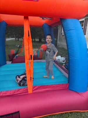 [This review was collected as part of a promotion.] My kids love this! It's very easy setup. Inflates within the quoted 2 minutes. Holds my 3 oldest just fine, plus little brother who likes to hang out in the corner. It's tall enough that my 49 inch tall son has room to jump and still be contained. The basketball hoop is almost at the top of the wall, so it's easy to throw the ball out of the netting....numerous times. The basketball is also very lopsided from the folding during packing. Not a huge deal, but probably could be improved. The directions state numerous times not to use an extension cord with the blower. The cord itself is long, but it would be better with an extra 5-10 feet of length. Our only outdoor outlet is on the front porch, and we are limited to the areas we can put the structure based on the length of the cord.