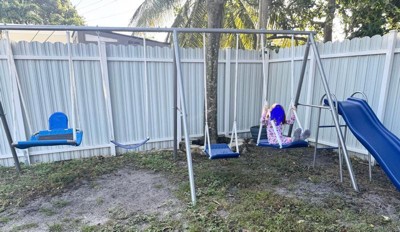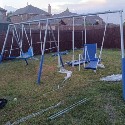 [This review was collected as part of a promotion.] I received this playset from influenster for free to try and leave my honest review. It came with slide and 3 different swings. It took up 4 days to assemble, it was easy but my backyard sunny all day so we catch an hour everyday to assemble. It's fun and playful my girls loved so much. It's for 3_8 years old and it's totally safe for them.