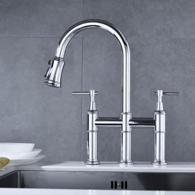 Detachable Spray Head Bridge Style Kitchen Faucet, Spot-Free