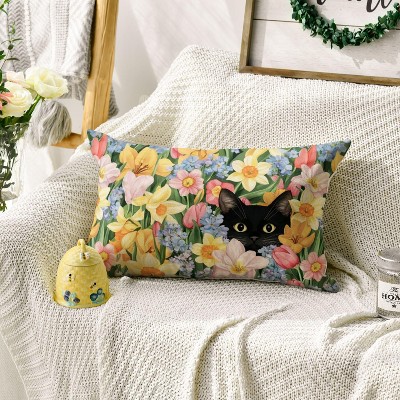 Spring Summer Sunflower Lumbar Throw Pillow Cover 12 x 20, Floral Flower Eucalyptus Leaves