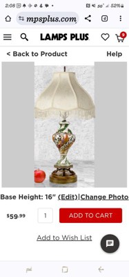 We have an antique brass and glass floor lamp that has never had a proper shade. Now with lamps plus it does. I love it.