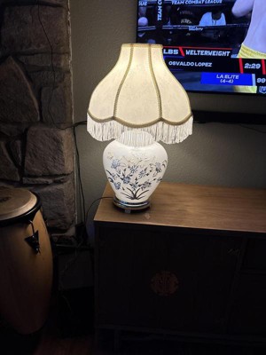 This shade absolutely made the antique lamp! It is a beautiful fabric,the design is so pretty but not gaudy, the shape is unique and this shade is truly a work of art. Simply perfect!