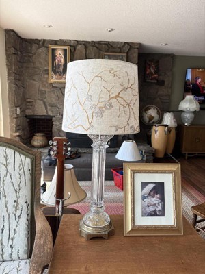 This shade was purchased to use with a vintage glass column lamp. Its whimsical nature print brings the complimentary flare this lamp deserved.