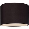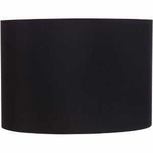- Drum lamp shade in a black polyester blend fabric. Hardback shade, unlined white interior.