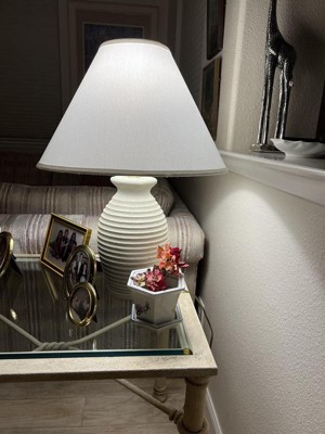 New lampshades were needed on all of my old lamp bases. This particular shade is well made and fit the lamp base perfectly. The shade is made of a good fabric and came with a new harp which is a nice touch. Color is white.