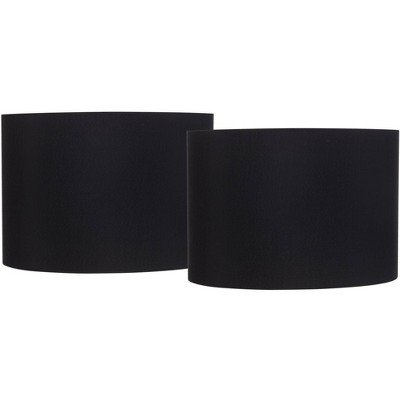 Springcrest Collection Set of 2 Hardback Drum Lamp Shades Black Medium 13" Top x 15" Bottom x 10" Slant Spider Replacement Harp and Finial Fitting