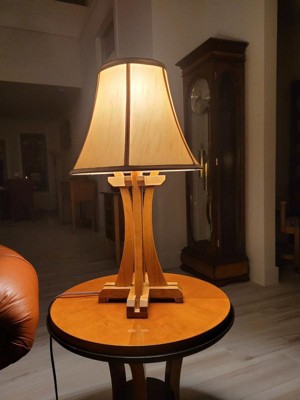 I really like the soft, diffuse, light tan glow produced by these two shades, used for matching cherry wood end table lamps. Well-constructed with white interior that projects adequate light for coach reading. Included harps were perfectly sized for the shades: apparently at 8.5" in height. Thank you!