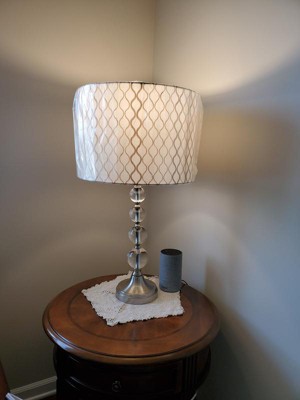A sophisticated look with a lovely hourglass pattern. This hardback drum shade features off white fabric with tan embroidery. A great way to refresh existing lamps and fixtures. Sophisticated style for table or floor lamps, from the Springcrest brand of lamp shades.