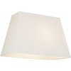 - Ivory linen fabric shade, rectangular shape with tapered sides.