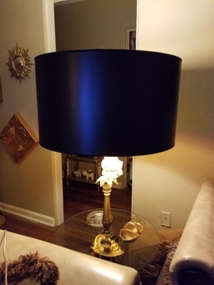 Freshen up the look of a chic lamp with this modern drum lamp shade. From its chic silhouette to its black paper finish, the shade is a bold, eye-catching choice that adds drama to surrounding decor. The shade features a gold liner that offers sophisticated warmth when the lamp is lit, perfect for a welcoming living space. A polished brass finish spider fitter is included with the shade.