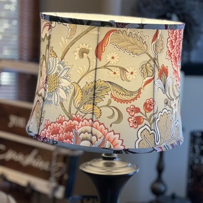 Take advantage of the design-forward floral print on this softback drum lamp shade from Springcrest Collection™. An earthy palette of multicolor blooms on a lovely sage cotton and poly blend fabric balances multi-tonal design schemes and adds a fresh finish to neutral decor. Explore the variety of colors that saturate a charming flared drum silhouette with self-fold trim and a white poly lining. The correct size harp and a finial are included free with this shade.