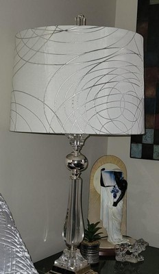 Springcrest Set of 2 Drum Lamp Shades Off-White Silver Circles Medium 15" Top x 16" Bottom x 11" High Spider with Harp and Finial