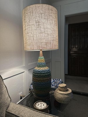 Beautiful shade - just the right MCM style for a vintage drip glaze lamp. Love the nubby texture and etching.