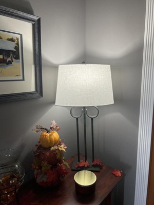 Crisp and clean, this hardback oval lamp shade adds simple structure to modern and classic motifs. This clean-lined design features white linen fabric with an unlined interior. A rolled trim smooths out the edges while the chrome spider fitter radiates. Correct size harp and finial are included.
