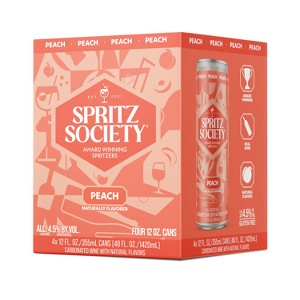 - Pack of four (4) Spritz Society Peach 355ml cans