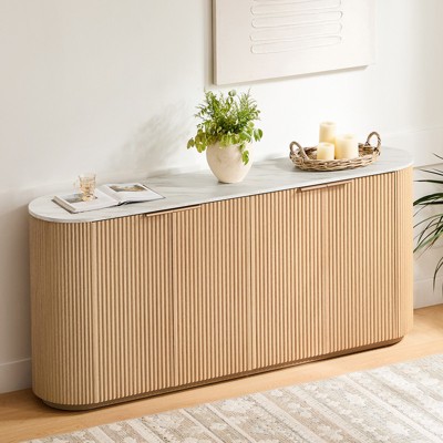 Spruce & Spring 61" Oak + Marble Top Modern Sideboard Buffet Cabinet with Storage