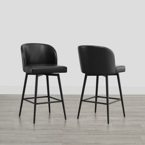Its rounded back curves around you to create an inviting, cozy feel. The padded seat features high-density foam padding for a luxurious sitting experience. With a 26 in. seat height, these swivel counter barstools are ideal for counter-height tables and islands. The durable iron base enhances the contemporary appeal of this bat stool set. A footrest maximizes stability and comfort. Now you can easily converse from every angle with the 360-degree swivel rotation. This full rotation also makes slipping in and out of the seat easier. With their functionality, high-quality craftsmanship, and mid-century contemporary style, the Charlotte Counter Height Bar Stool Set of 2 will instantly elevate the style of your kitchen or bar area. Inspired by classic mid-century style, the Charlotte Counter Height Swivel Barstool is a handsome addition to your home bar or kitchen island