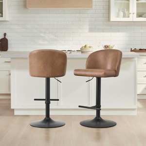Whether you're sipping your morning coffee at the kitchen island or entertaining guests at your home bar, this adjustable airlift counter bar stool adapts effortlessly to your needs. The sleek silhouette, curved backrest, and softly padded seat provide exceptional ergonomic support, while the 360¡ã swivel and smooth gas lift height adjustment let you move with ease. Choose from faux leather or multi-colored fabric upholstery to complement your contemporary or contemporary d¨¦cor. Built to last, this air lift bar stool is where style meets performance. Elevate your everyday seating with this contemporary swivel adjustable bar stool, designed to bring style, comfort, and flexibility to your space