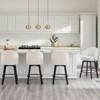 The padded seat cushion ensures extra comfort during meals, while the 360-degree swivel plate and metal footrest maximize your ease and convenience for dining and socializing. Handcrafted by artisans, the durable solid wood base is hand-painted and hand-distressed in a black finish, replicating a naturally weathered appearance. Ideal for any contemporary counter setup, this swivel counter stool combines style and functionality, making it the perfect counter bar stool with back support and metal legs for any contemporary space. This graceful bar stool features a softly rounded back that adds a touch of luxury to your counter or bar area, offering wraparound comfort