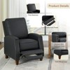 Experience ultimate relaxation with the Alston push back recliner. This recliner boasts chic design and sleek silhouette, perfect for any living space. With three adjustable positions for reading, watching TV, or napping, the faux leather recliner is versatile enough for living room, den, bedroom, or home office. Elegant nailhead trims add sophistication touch, while sturdy solid wood legs ensure durability. Easy to move and upholstered in faux leather, this accent chair recliner epitomizes comfort and style for adults seeking perfect recliner.
