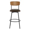 The stunning mixed-material look adds contrast and visual interest to your aesthetic. 360-degree swivel maximizes comfort and convenience. With a simple spin, you can enjoy the conversation from every angle, making this set of the perfect seating choice for kitchens and entertaining spaces. Built for comfort, this set feature a padded seat, wood-finish backrest, and metal footrest. The high-density foam seat pad creates a cozy seating experience and features easy-to-clean upholstery. Handcrafted by artisans, the sleek, durable base is constructed of metal and hand-painted in a solid black finish. A 27-inch seat height is ideal for counter-height kitchen islands and tables. Sit comfortably and enjoy an informal happy hour or a quick meal with this wood and metal swivel counter stool set. An ideal blend of style and function, this Claire Wood and Metal Counter Stool brings extra seating and contemporary style to any kitchen island, pub table, or home bar This bar stool piece adds both style and function.