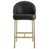 Highlighting a sculptural arc metal backrest and plush upholstered seat, this stool combines sleek contemporary lines with all-day comfort. The dual-tone metal legs¡ªavailable in matte black or gleaming gold¡ªoffer a striking contrast to the soft, textured seat. With a built-in footrest and a perfectly proportioned 25. 5" seat height, it's ideal for counter-height seating in contemporary kitchens or dining nooks. Turn your kitchen island into a style statement with this gallery-worthy counter stool This bar stool piece adds both style and function.