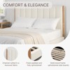 For coziness, this upholstered platform bed is wrapped in foam and covered in textured fabric. Channel tufting on the panel headboard adds sophistication. Extending to the top of the headboard, natural wood legs add warm contrast. The durable solid wood framework ensures long-lasting support and stability, highlighting six points of floor contact. The durable wood slat support system eliminates the need for box springs. Exuding minimalistic allure, the low profile and clean lines of the Mid-Century contemporary Upholstered Platform Bed make it the focal point of any bedroom This upholstered bed piece adds both style and function.