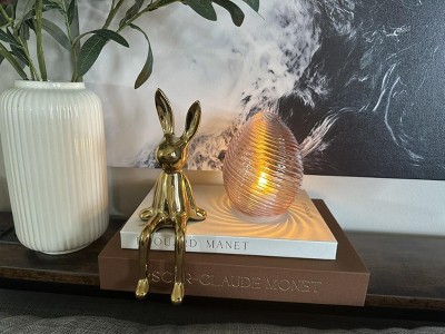 A stylish and polished addition to your Easter decor. I bought the pink one and placed a flameless electric tea light inside of mine. Looks great!