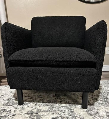 Square Back Accent Arm Chair Boucle Black - Threshold™: Upholstered Polyester, Rubberwood Legs