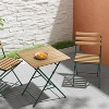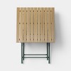 Add comfortable, stylish seating to your backyard or patio with this Faux Wood Furniture Collection from Room Essentials™. This collection showcases a rectangular patio end table, a patio chair and a square patio end table featuring a slatted polystyrene top with green frame — everything needed to create the perfect spot for relaxing in ultimate comfort. These pieces are crafted from powder-coated metal with rust-resistant properties to withstand the outdoor elements, while the foldable design makes for easy storage when not in use.